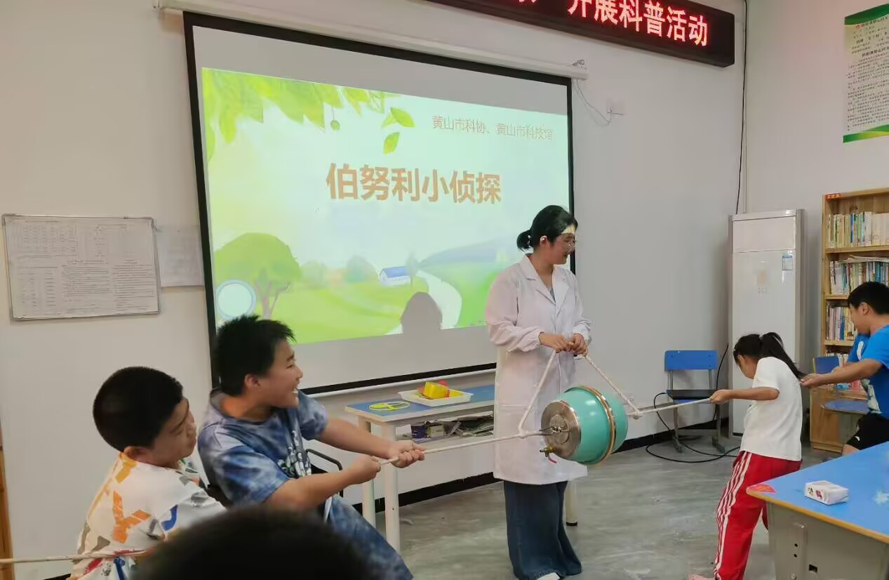 活动期间,为了提升儿童科学素养和动手能力,实践团队联合黄山科技馆科普志愿者为当地留守儿童带来了一场别开生面的科普体验活动。伯努利趣味实验、互动游戏、科学小课堂……丰富的内容让孩子们在欢笑中探索科学奥秘,点亮心中的好奇之光。