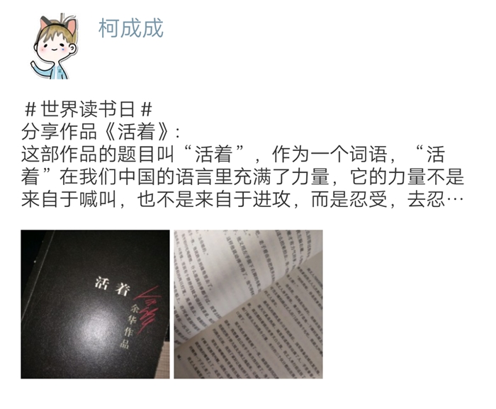 此次线上活动,搭建了交流与分享的平台,让更多的人享受到了读书的乐趣,唤醒了同学们对文字的热情,相信“多读书、读好书”的良好风尚将带动更多的人。