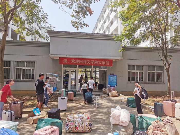 学生返校期间,19级汉语言文学专业学生由横江校区搬往率水校区,该院党总支副书记、班级辅导员亲临学生搬迁现场,指挥、协调行李装卸,该班学生与志愿者们通力协作,圆满顺利的完成了搬迁工作。