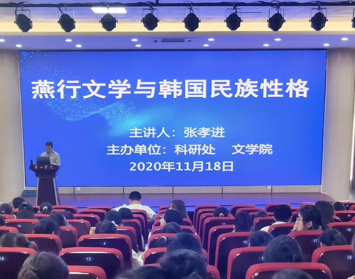文学院博士张孝进所作的“燕行文学与韩国民族性格”的学术报告会于11月18日下午在文端楼二楼报告厅举行,近200余师生听取报告。