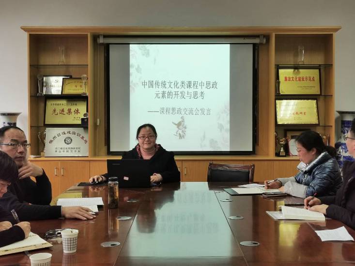 会上,汉语言文学专业杨辉、汉语国际教育专业王琳、文化产业管理专业陈玲等三位老师分别以《修辞学》《中国文文化史》《古代汉语》为例,围绕提高思想认识、挖掘课程思政元素、改进教育教学方式、完善考核评价体系等方面,分享了推进课程思政的经验与体会。