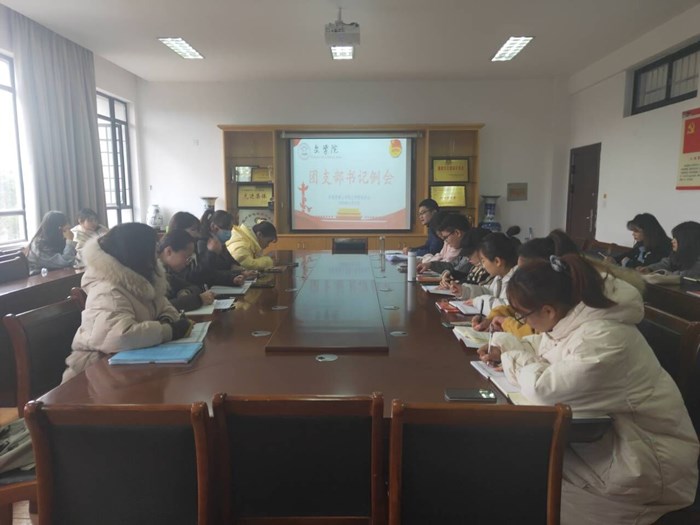 12月23日,文学院团支部书记例会在文端楼二楼会议室举行,该院分团委负责人、学生会主席团成员、各班级团支部书记参加了此次会议。