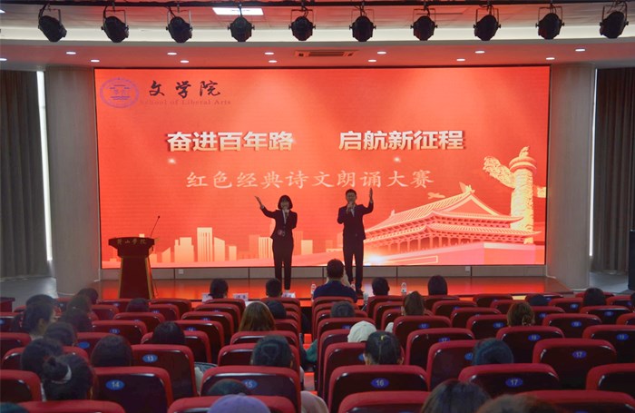 4月17日下午,文学院“奋进百年路,启航新征程”红色经典诗文朗诵大赛于文端楼二楼报告厅举行。该院团委负责人、全体辅导员出席活动并担任评委,近两百名学生到场观看比赛。