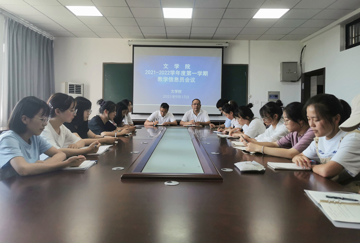 9月15日下午,文学院召开2021-2022学年度第一学期教学信息员会议,分管教学副院长朱宏胜及各班教学信息员参加会议,会议由副院长沈昌明主持。
