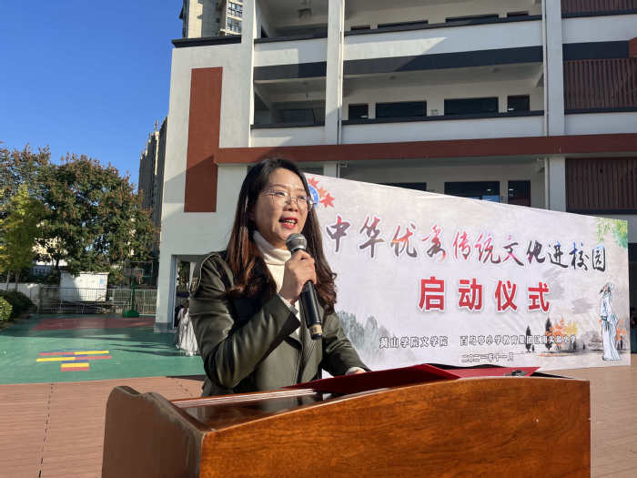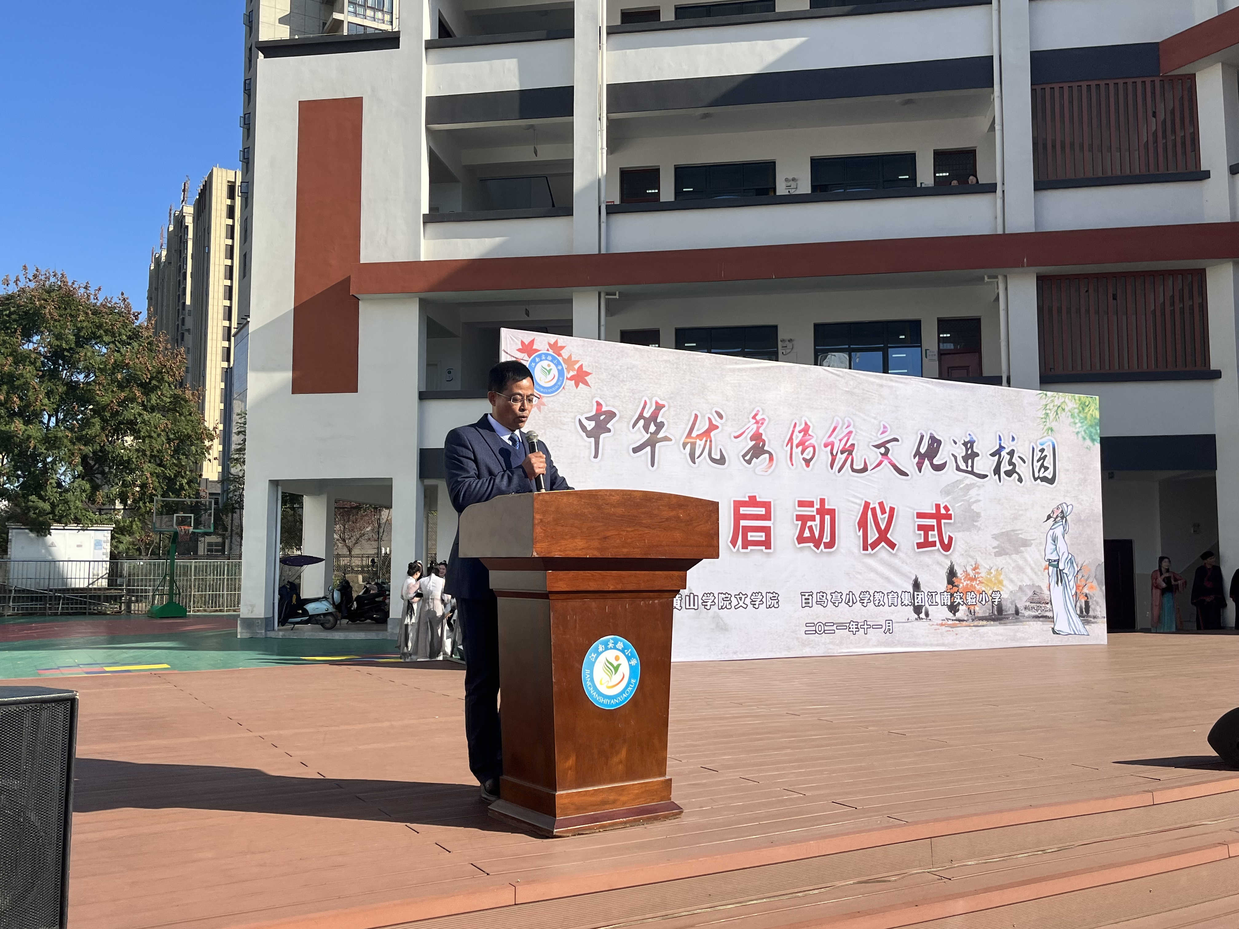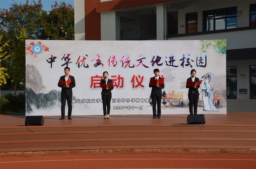 2021年11月10日下午,由文学院与屯溪江南实验小学共同开展的中华优秀传统文化进校园活动启动仪式在屯溪江南实验小学隆重举行,文学院党总支书记汪方学、文学院副院长朱宏胜、江南实验小学校领导及千余名学生参加了此次活动。