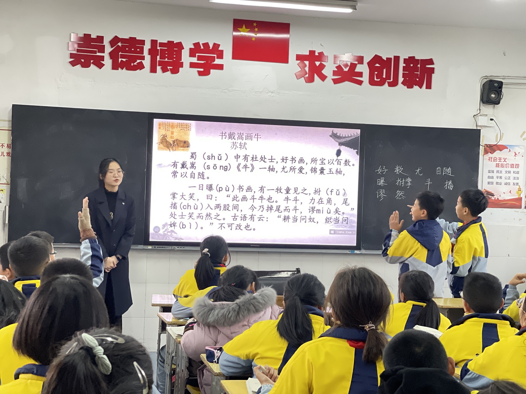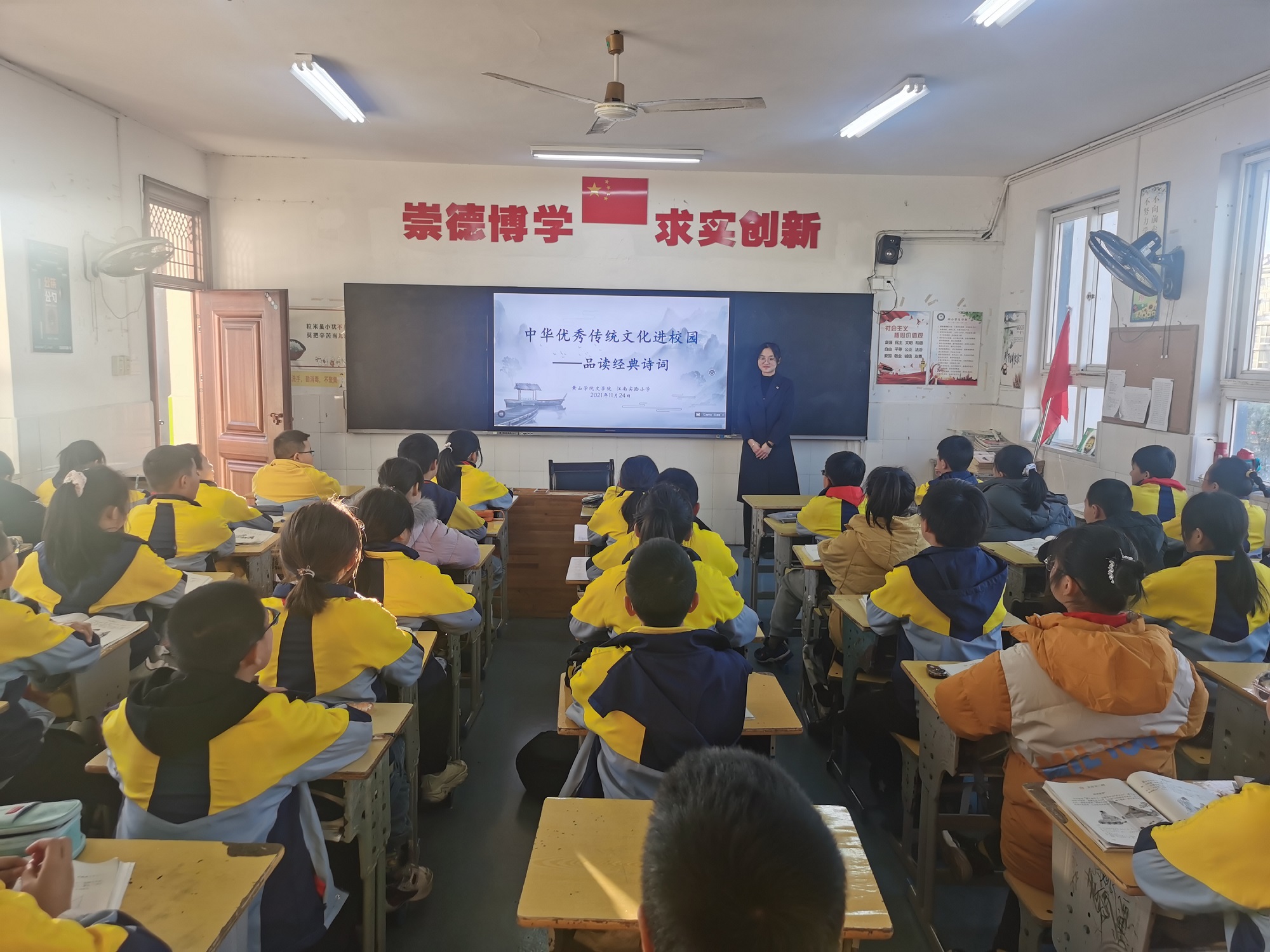 11月24日下午,由黄山文学院与屯溪江南实验小学联合开展的中华优秀传统文化进校园系列活动在屯溪江南实验小学举行,文学院选派10名大学生志愿者积极前往江南实验小学展开志愿教学活动。