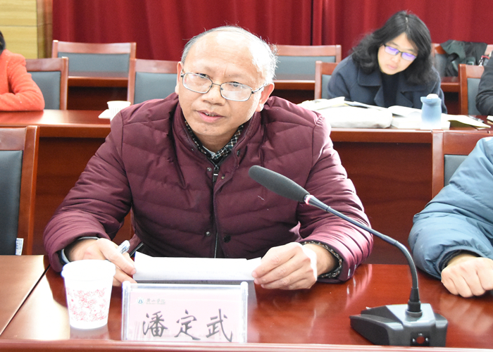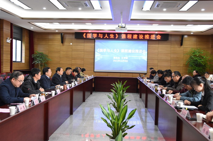 推进会上,文学院相关负责人汇报了《国学与人生》课程开课及建设情况;文学院潘定武教授汇报了教材修订情况;任课教师代表乔根、陈玲、刘板分别作了交流发言;学生代表丁子祎、胡雨辰分享了《国学与人生》课程学习心得体会。