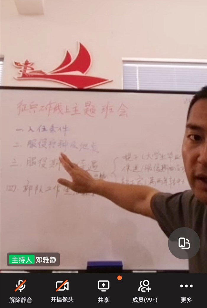 6月18日,文学院举办大学生征兵工作线上主题班会,200余名大学生在线参加了此次班会。