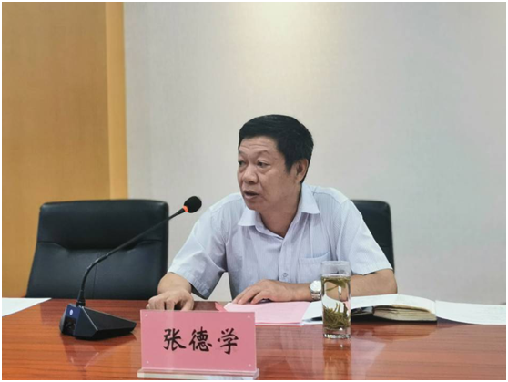 张德学代表学校致辞,并对与会的安庆师范大学两位教授表示感谢。他要求全体科研人员共同努力,确保协同创新项目能按时、按质完成,尤其要坚持研究质量至上,并把好意识形态关。