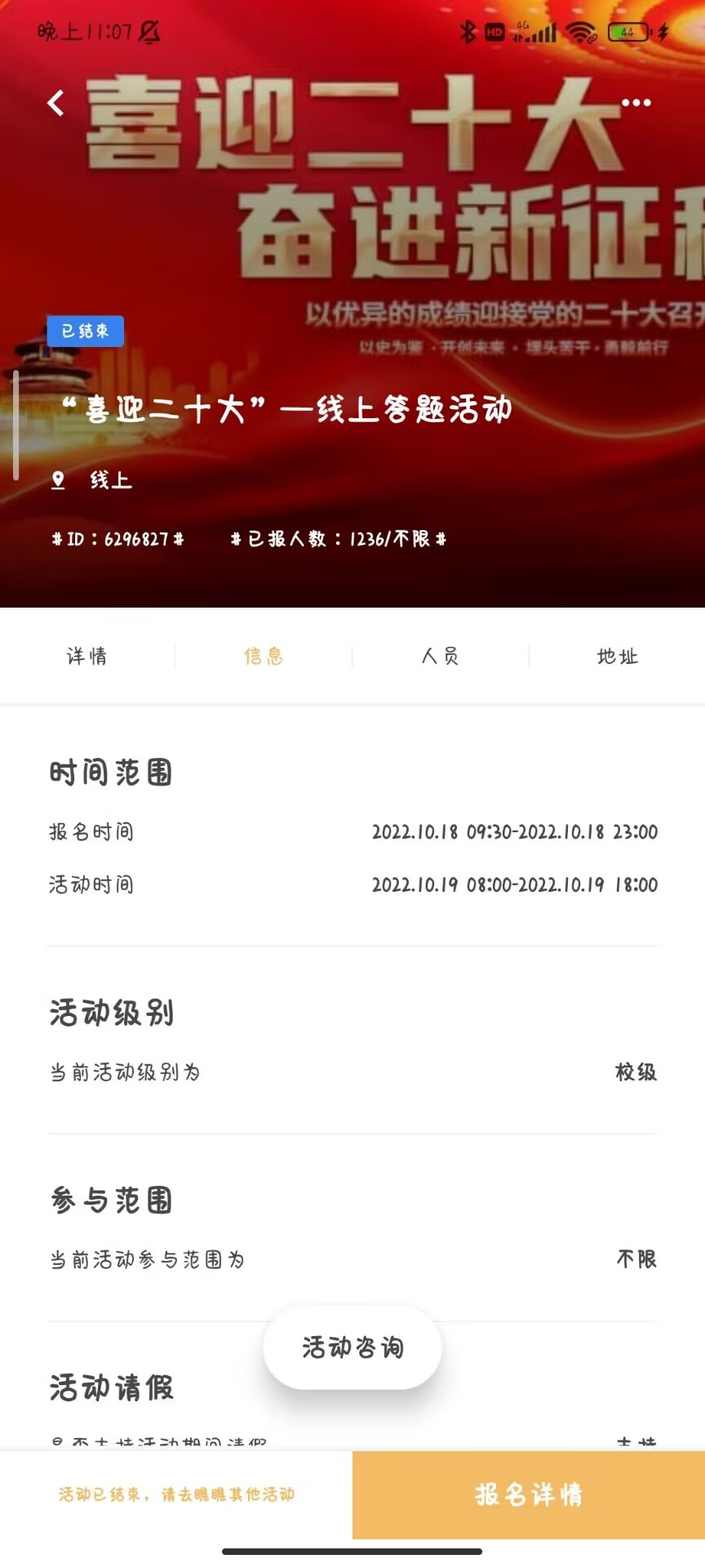 奋进新征程,建工新时代。2022年10月19日,由黄山文学社举办的“喜迎二十大”—线上答题活动圆满完结,参与人数约150人。