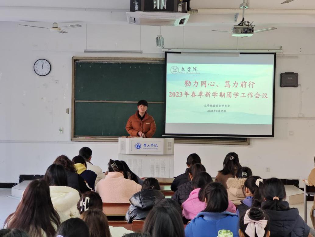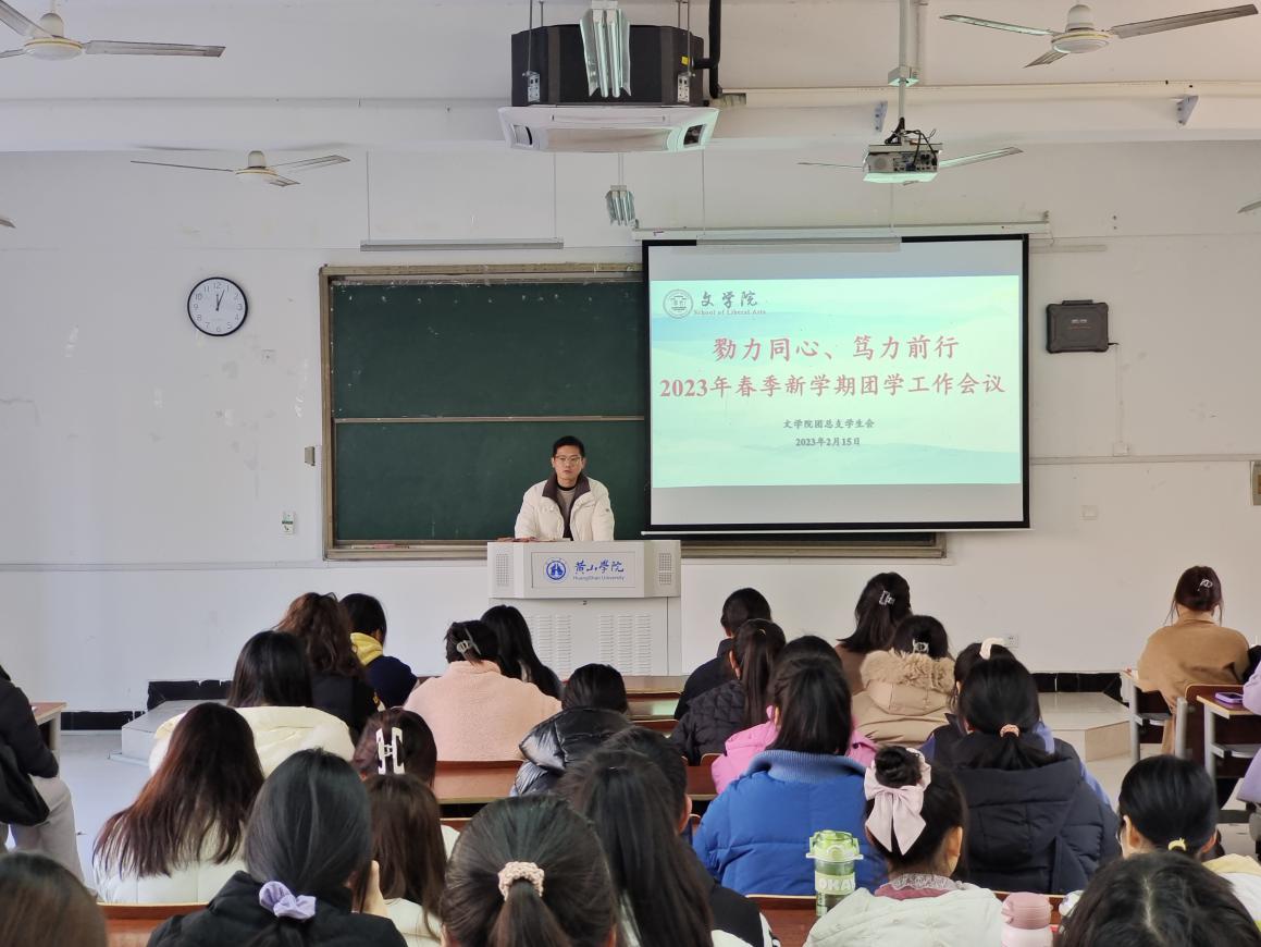2月15日中午,文学院团总支在文端楼2206教室召开新学期第一次团学工作例会。团委老师王星勇主持会议并布置安排本学期各项团学工作,学院团总支学生会全体成员参加。