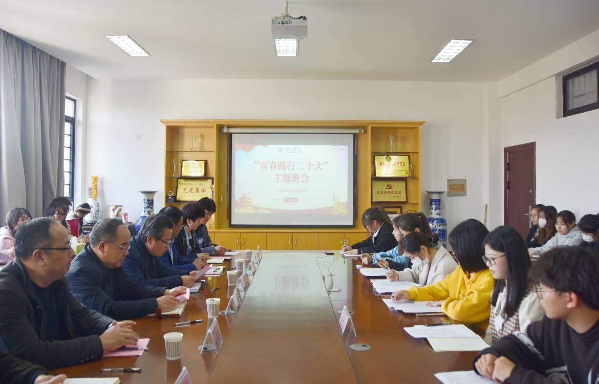 3月9日下午,文学院2020级汉语言文学1班在该院会议室举办“青春践行二十大”主题班会。校党委委员、副院长张小明,马克思主义学院党总支书记刘春安、学生处副处长汪彬,文学院领导班子成员、团委负责人、专职辅导员等参加了主题班会。主题班会由该班班长王远康主持。