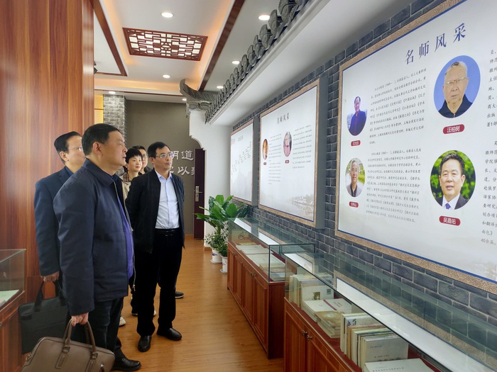 胡海生一行实地参观了学院办学成果展示厅、茶艺实训室。