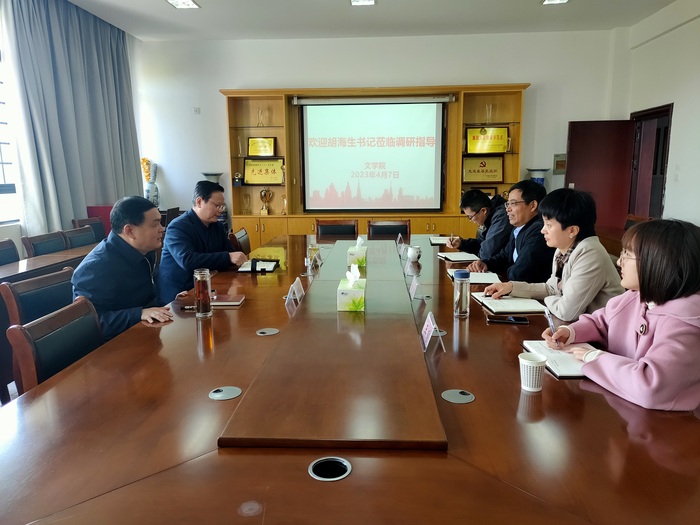 4月7日下午,校党委委员、纪委书记、监察专员胡海生在校纪委副书记王国平的陪同下来文学院进行工作调研。