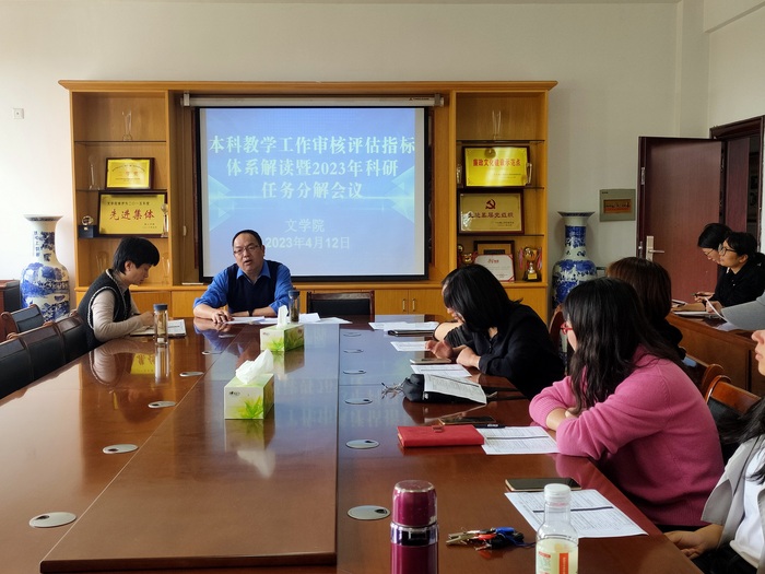 4月12日下午,文学院召开全体教师会议,院长沈昌明解读了2024年《安徽省普通高等学校本科教育教学审核评估指标体系(试行)》,并对本年度科研任务进行了分解。