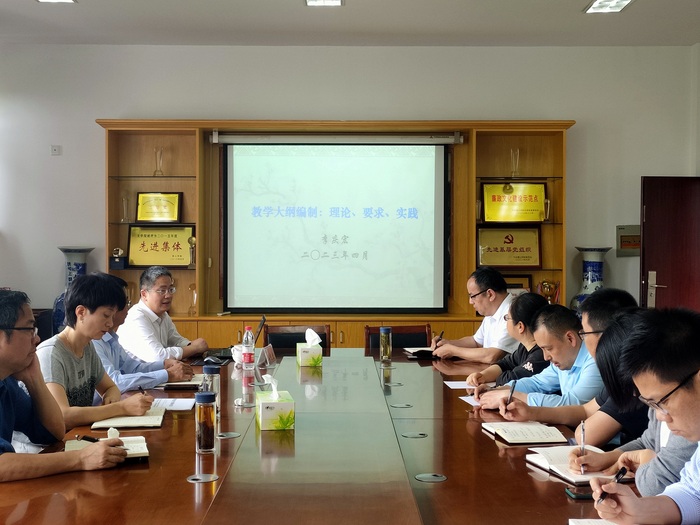 4月19日下午,校党委委员、副院长李庆宏在文端楼二楼会议室为文学院教师作2022版课程教学大纲修订讲座。文学院党总支副书记、院长沈昌明主持会议,全体教师参加会议。
