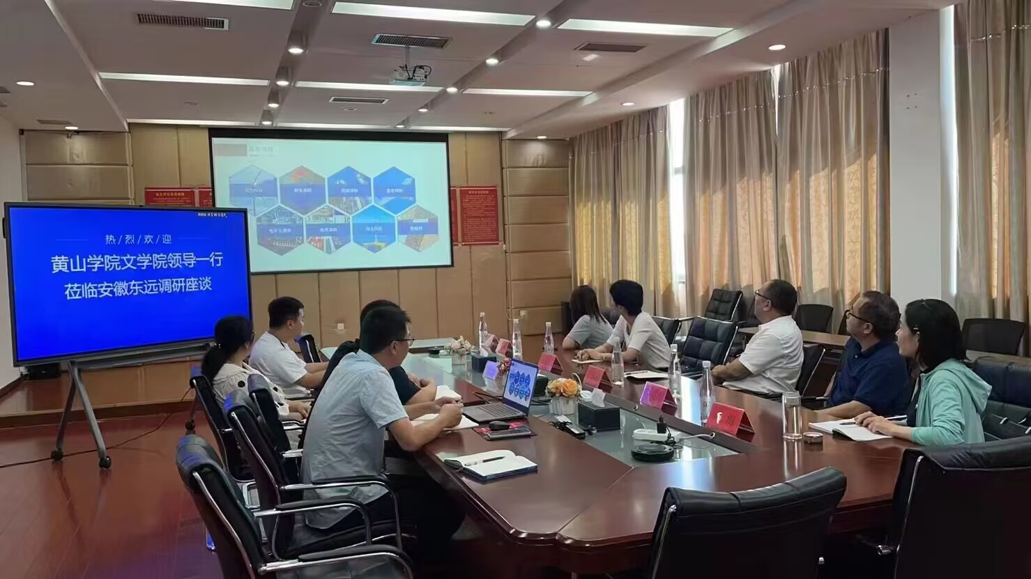 沈昌明一行先后走进安徽东远新材料有限公司、黄山神剑新材料有限公司、安徽泰达新材料股份有限公司、黄山徽母实业有限公司,近距离参观企业生产经营环境,并与企业负责人和相关人员就企业管理,人才需求,产教融合等方面开展座谈交流。
