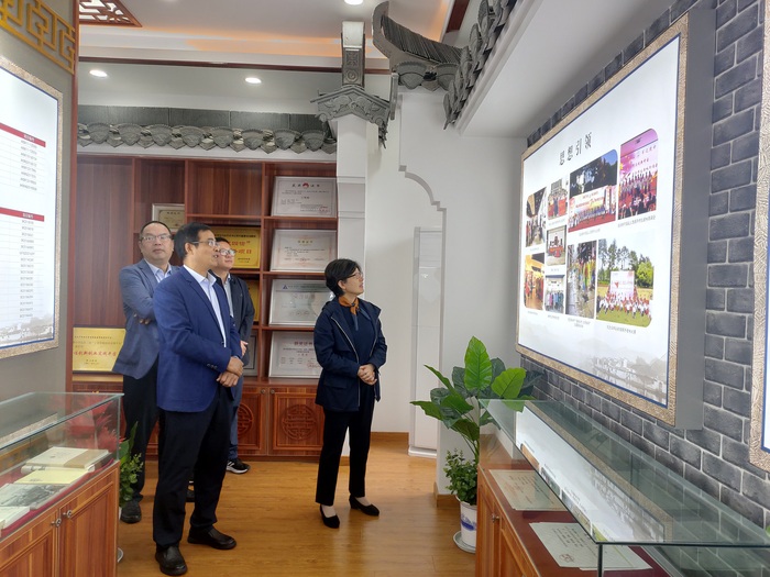 章文静一行还实地察看了文学院办学成果展示馆。