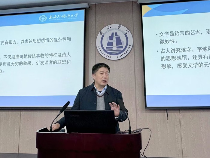 11月26日下午,上海外国语大学吴春相教授应邀为文学院师生作了题为“新兴词语研究和词汇教学”的学术报告,近200名师生参加活动,文学院院长沈昌明主持报告会。