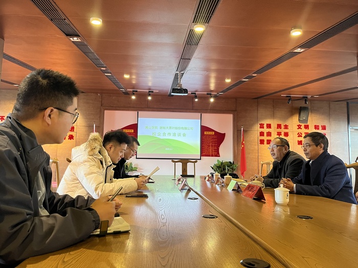 12月1日,文学院党总支书记汪方学、院长沈昌明、副院长朱宏胜率校企合作实践教学团队成员赴徽州区谢裕大茶叶股份有限公司洽谈校企合作业务。谢裕大茶叶股份有限公司总经理、法人代表谢明之、总经办主任于文明等热情接待。