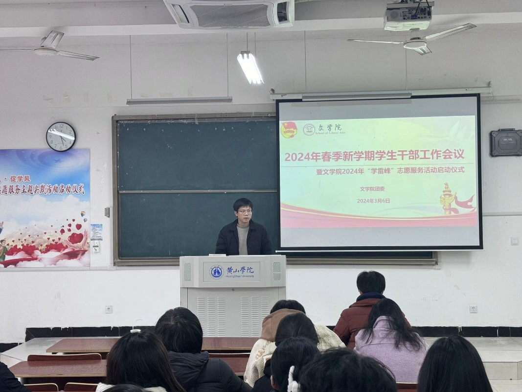 3月6日下午,文学院2024年春季新学期学生干部大会和“学雷锋”志愿服务实践活动启动仪式于文端楼2206教室成功开展。文学院党总支副书记周志荣、团委负责人王星勇以及学生会全体成员共同参加了此次大会。