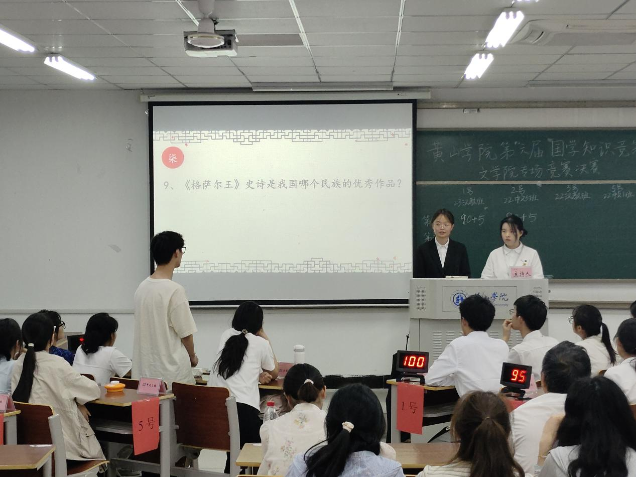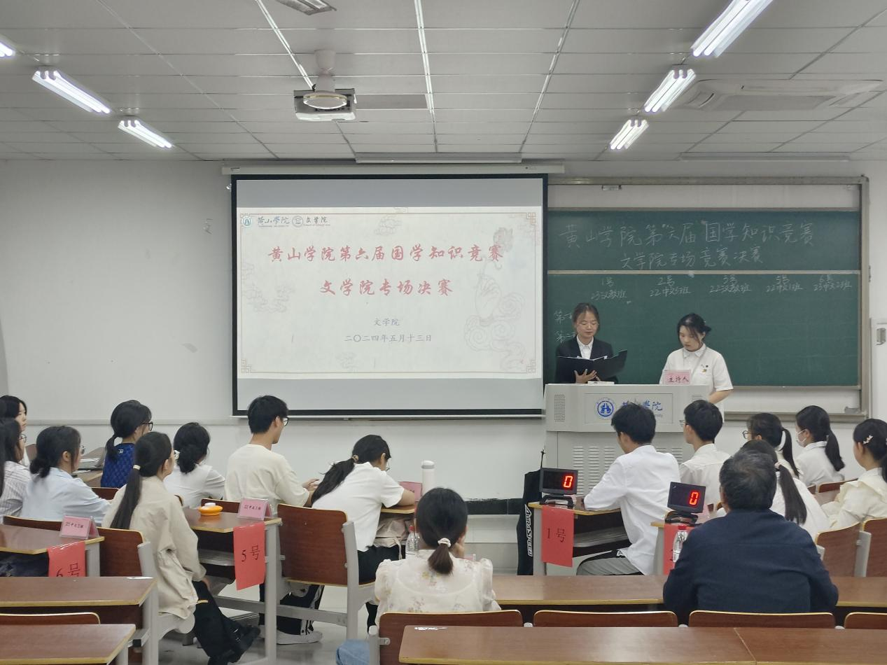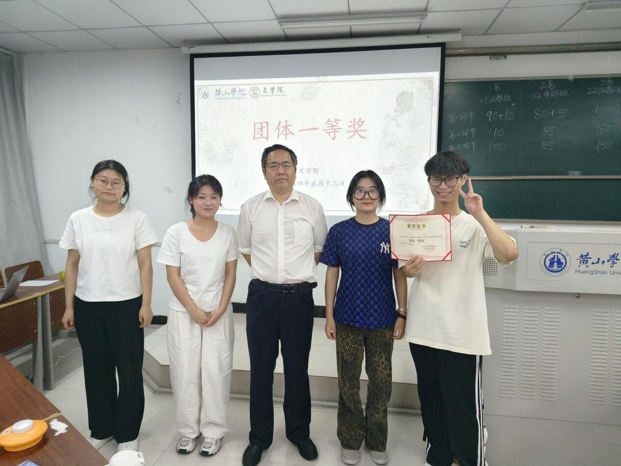 5月13日晚上,黄山学院第六届国学知识竞赛文学院专场决赛在文端楼2512教室举行。文学院副院长朱宏胜、学生党支部书记王琼、团委老师王星勇出席本次活动并为获奖队伍颁奖。