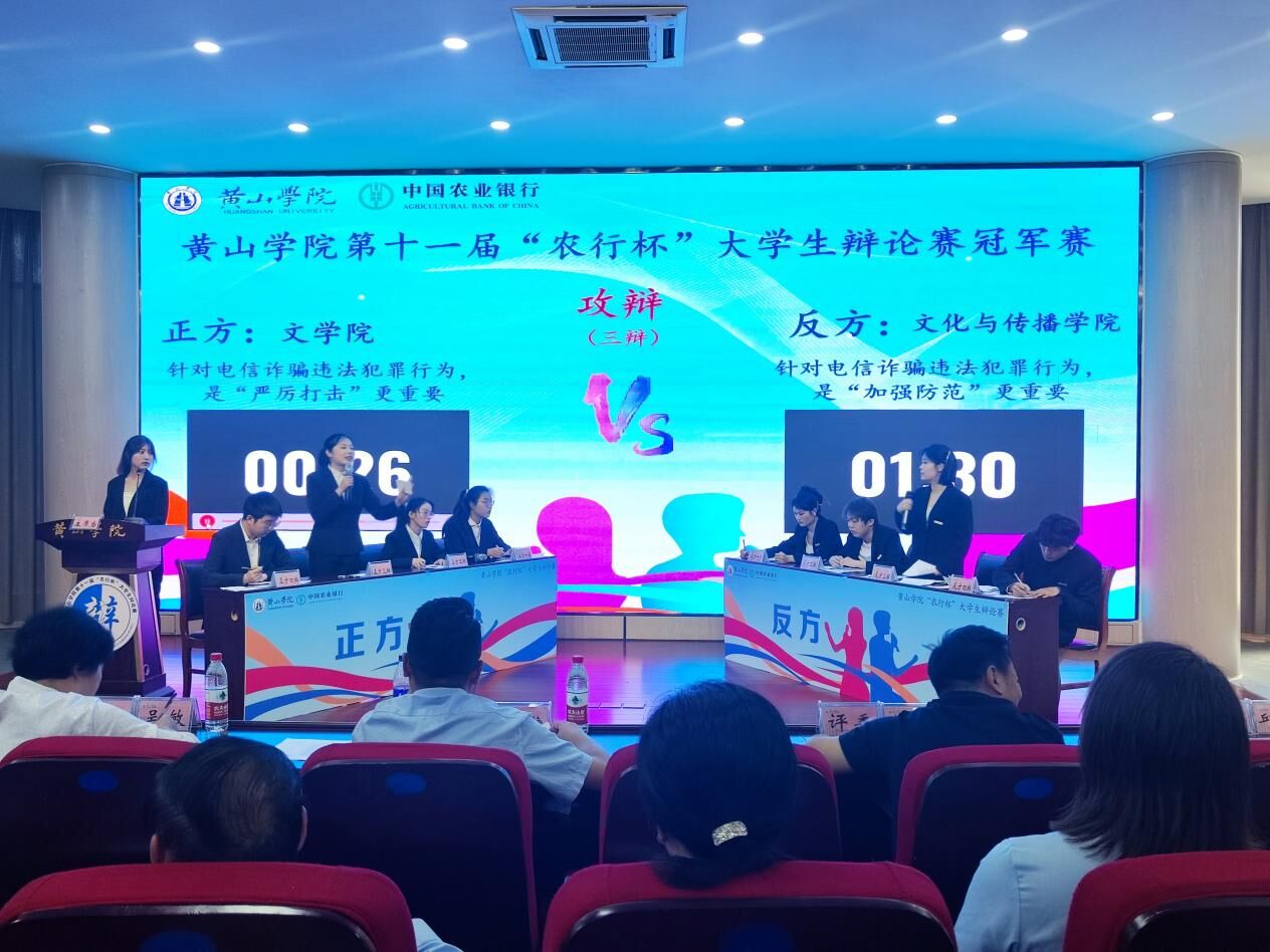 5月29日下午,由校团委主办,文学院承办,中国农业银行黄山分行冠名赞助的第十一届“农行杯”大学生辩论赛在率水校区文端楼第二报告厅圆满落幕,我院辩论队再次以绝对优势蝉联冠军。