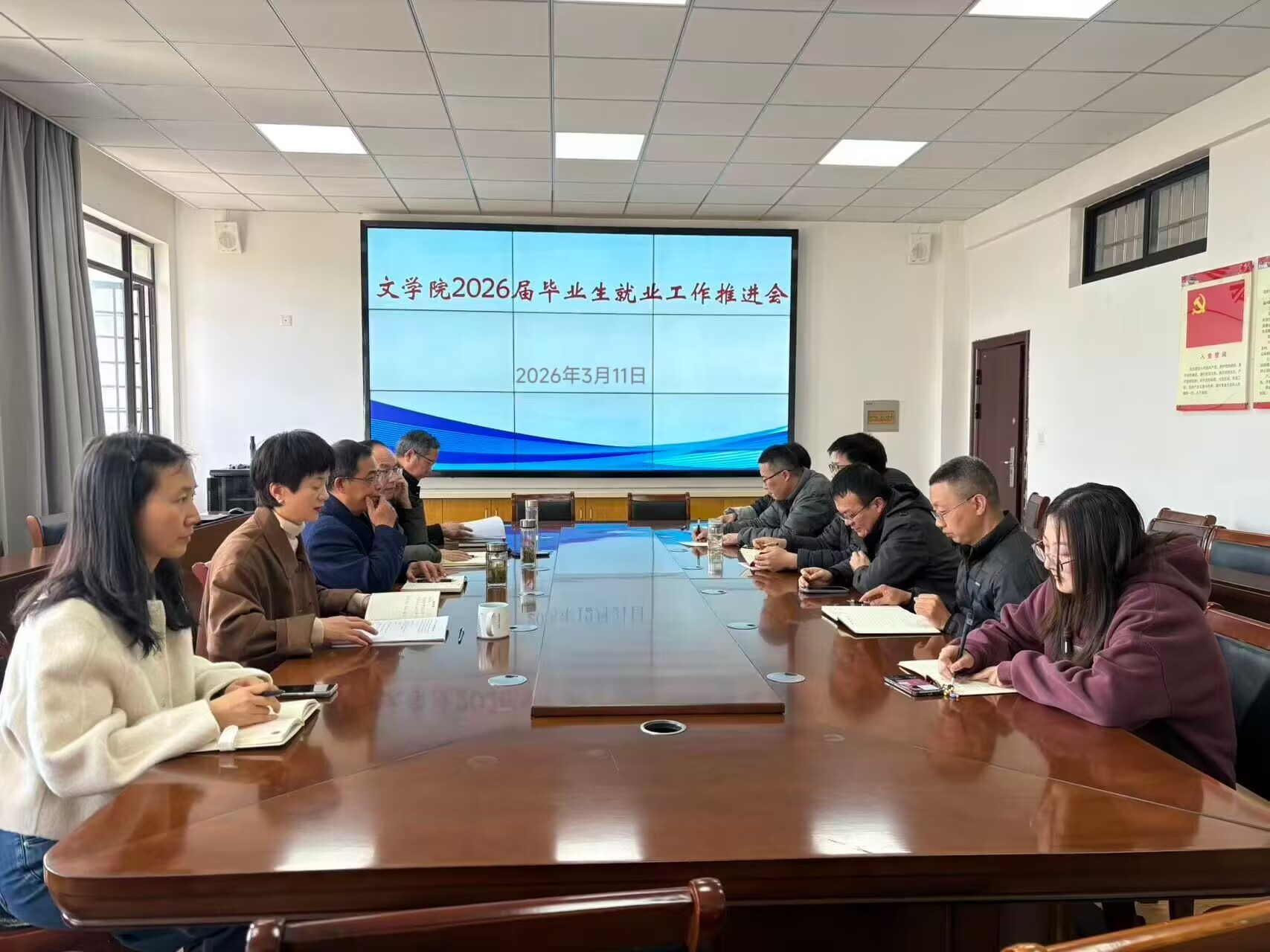 3月11日下午,文学院2026届毕业生就业工作推进会在学院会议室举行,院领导班子成员、教研室主任、学生党支部书记、毕业班辅导员参加会议。会议由院党总支副书记周志荣主持。