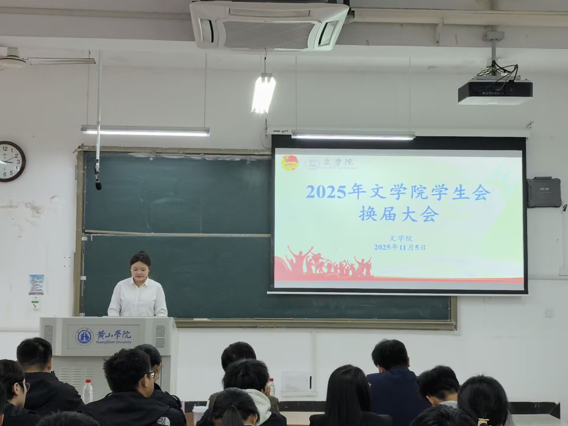 11月5日下午,文学院在文端楼2205教室召开2025年学生会干部换届大会。该院党总支副书记周志荣、专职组织员邓雅静、团委负责人王星勇、专职辅导员朱亚军及全体学生会成员参加此次大会。