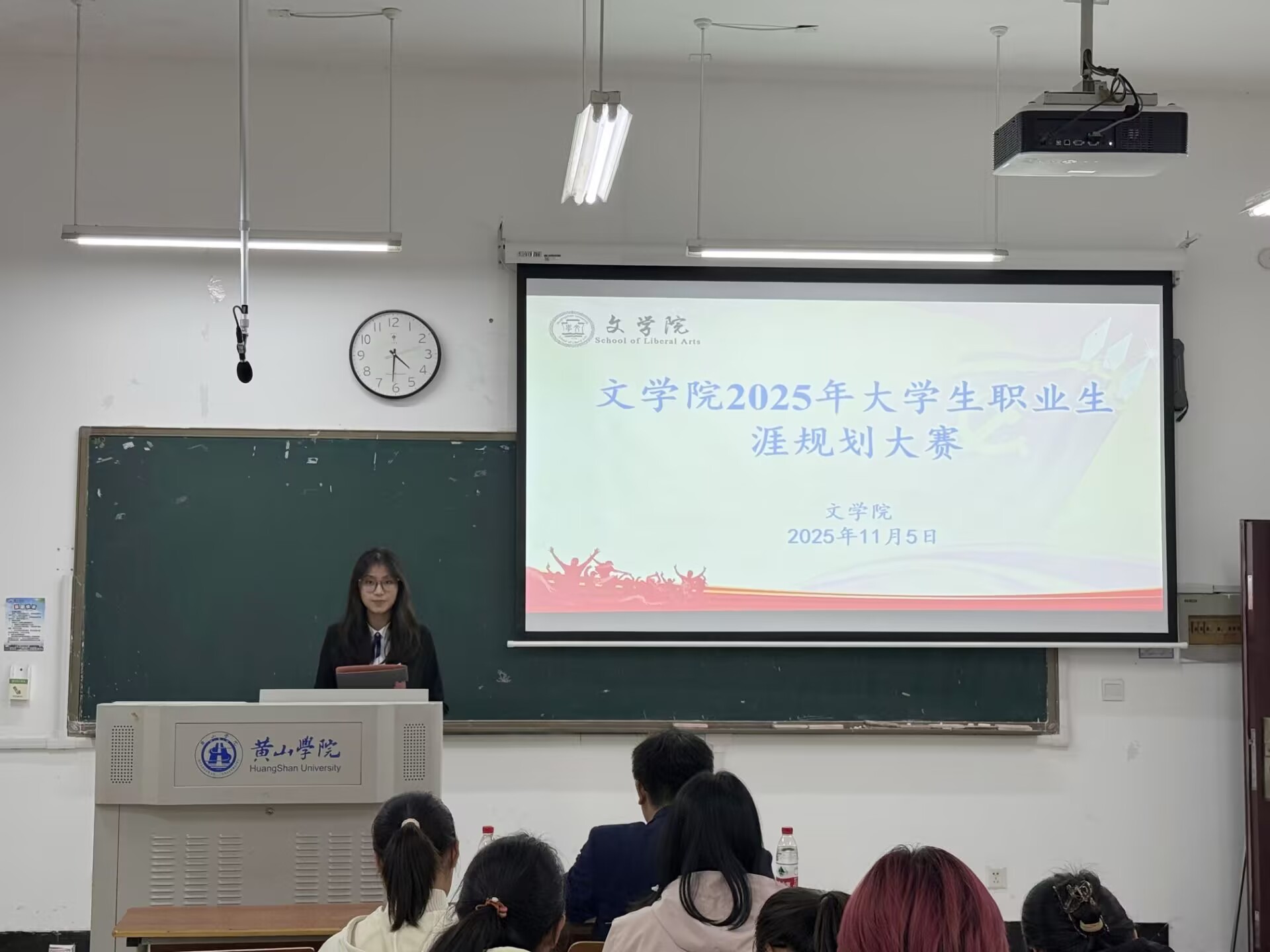 为引导学生开展精准化职业生涯规划,树立正确的就业观,全面推动毕业生高质量就业,11月5日下午,文学院在文端楼2104教室成功举办2025年大学生职业生涯规划大赛。