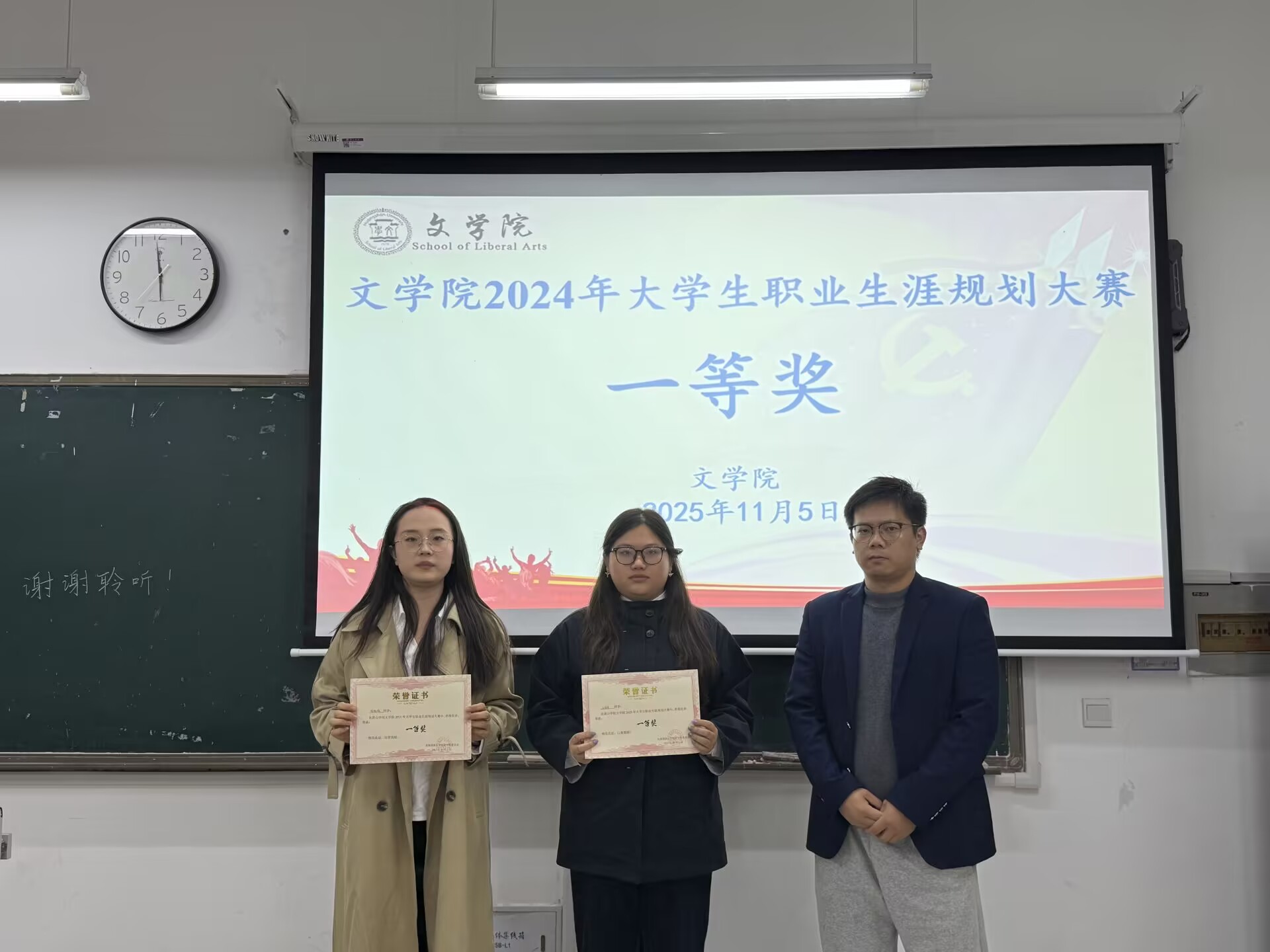 最后,经过公正评判,23中文2班王俣希、25中文专升本班徐微微荣获文学院2025年大学生职业生涯规划大赛一等奖,并代表学院参加校级职业规划大赛。