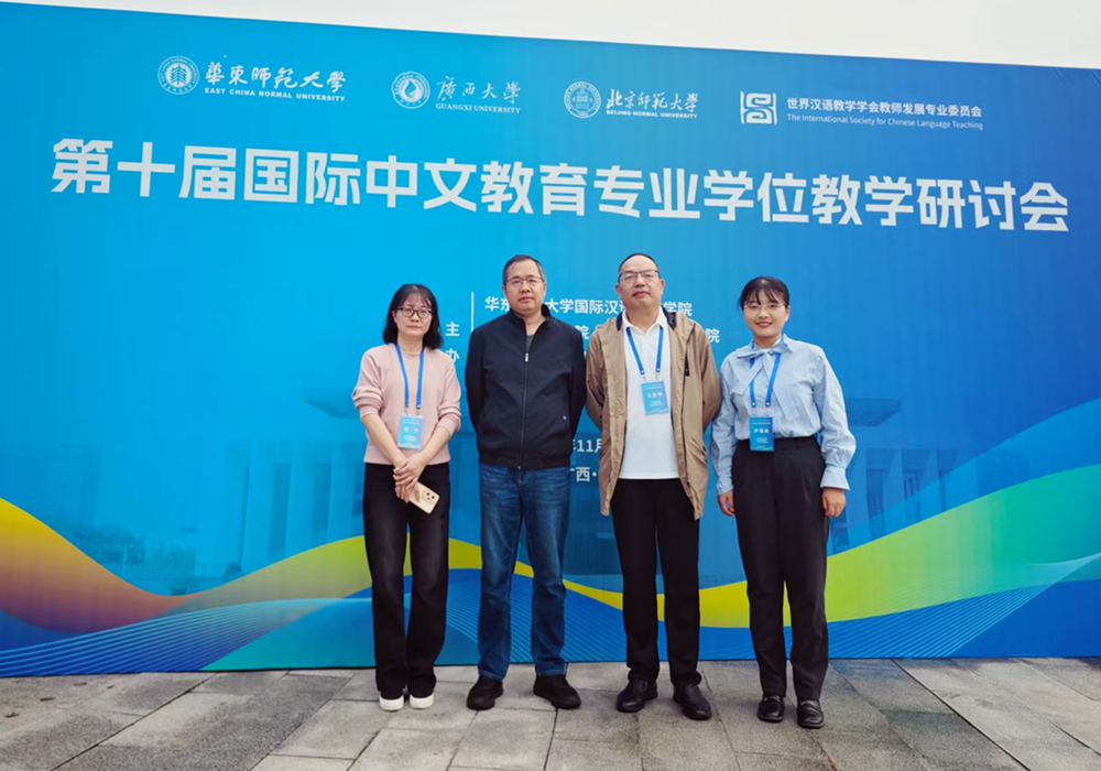 11月7日至8日,我院教师沈昌明、朱宏胜、唐宁、尹博冉等四人应邀参加第十届国际中文教育专业学位教学研讨会。此次会议由华东师范大学、广西大学、北京师范大学及世界汉语教学学会教师发展专业委员会联合主办。来自全国60多所高校和机构的300余名专家学者和研究生参会。