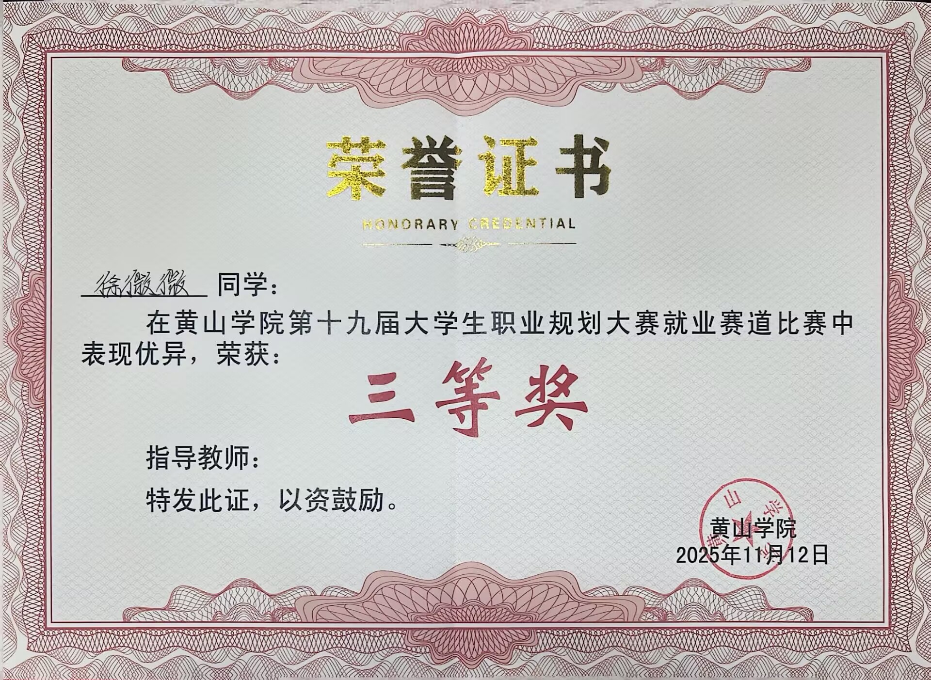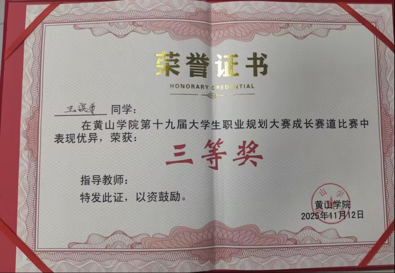 11月12日,黄山学院第十九届大学生职业规划大赛圆满落幕。我院学子在赛事中表现突出,凭借清晰明确的职业定位、详实可行的规划方案以及从容稳健的现场展示,从众多参赛队伍中脱颖而出,成功斩获成长赛道三等奖、就业赛道三等奖,充分展现了扎实的专业能力和良好的职业素养。