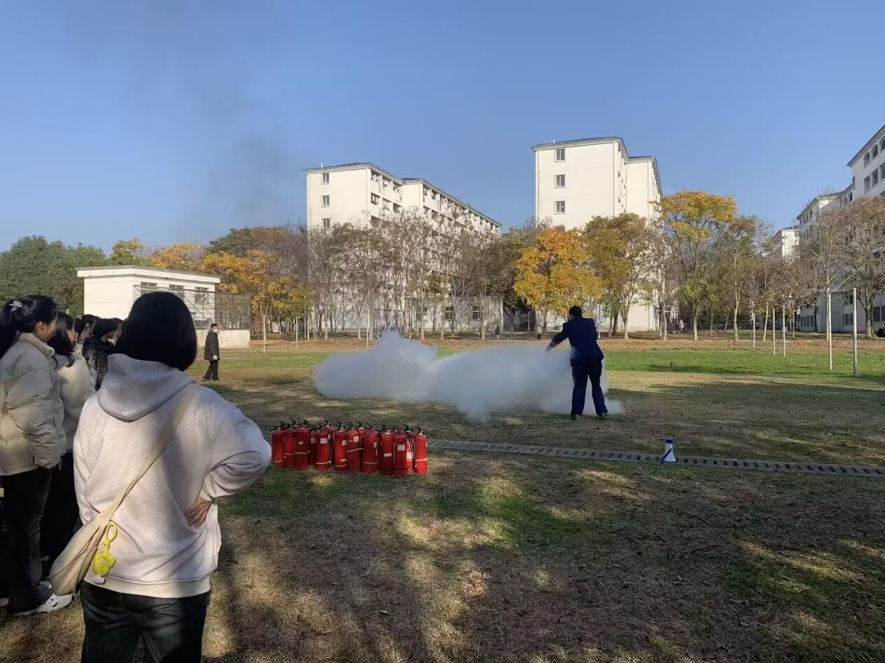 演练现场,安管处专业人员通过现场讲解,向师生普及了火灾成因、预防措施、初期火灾扑救方法及火场逃生技巧,并重点演示了灭火器“提、拔、握、压”的操作要领和消防栓的使用流程,强调了演练过程中的安全规范。随后,同学们亲身体验灭火器实操灭火,掌握了灭火器核心操作要领,有效提升了应急处置能力。