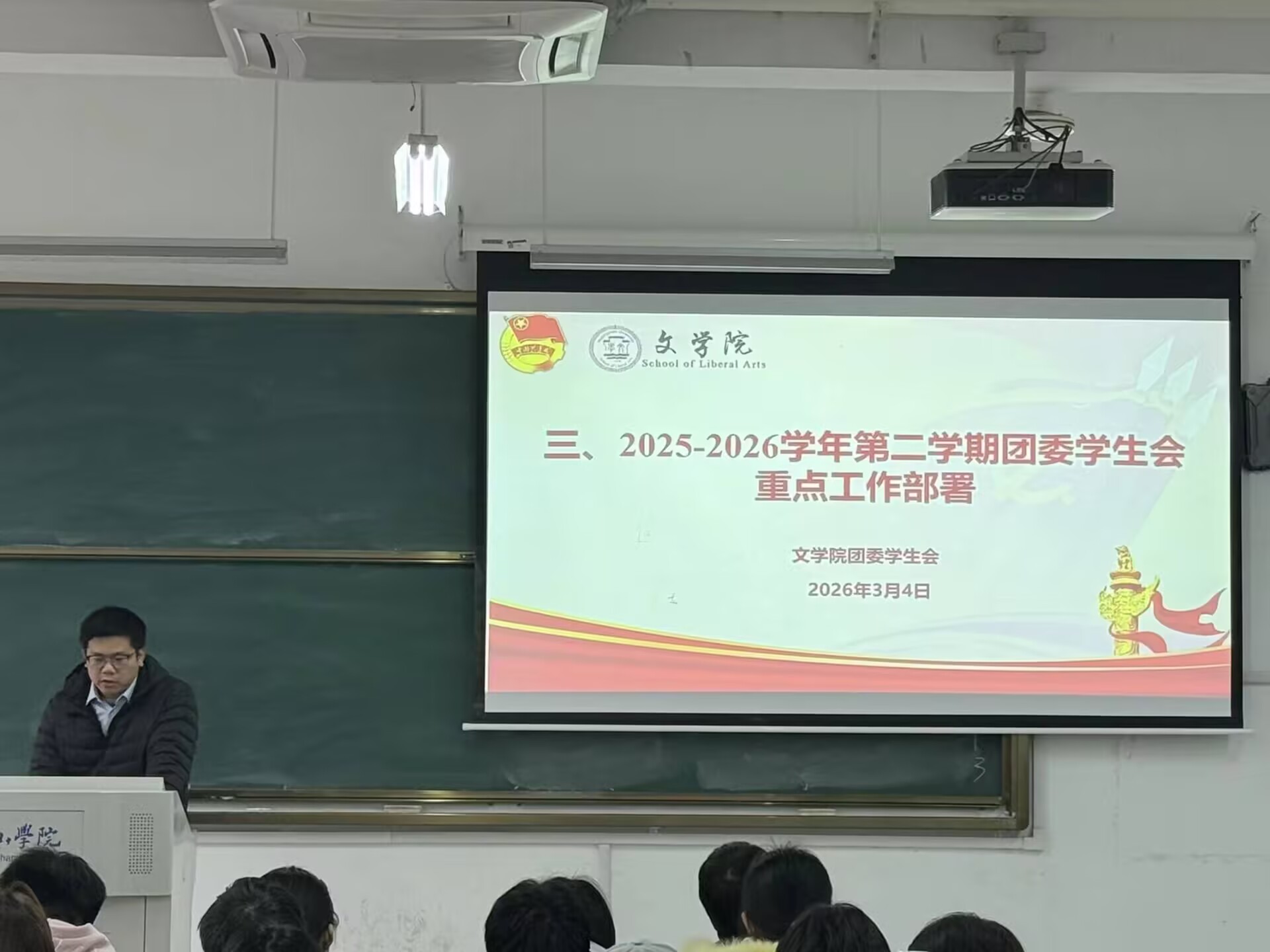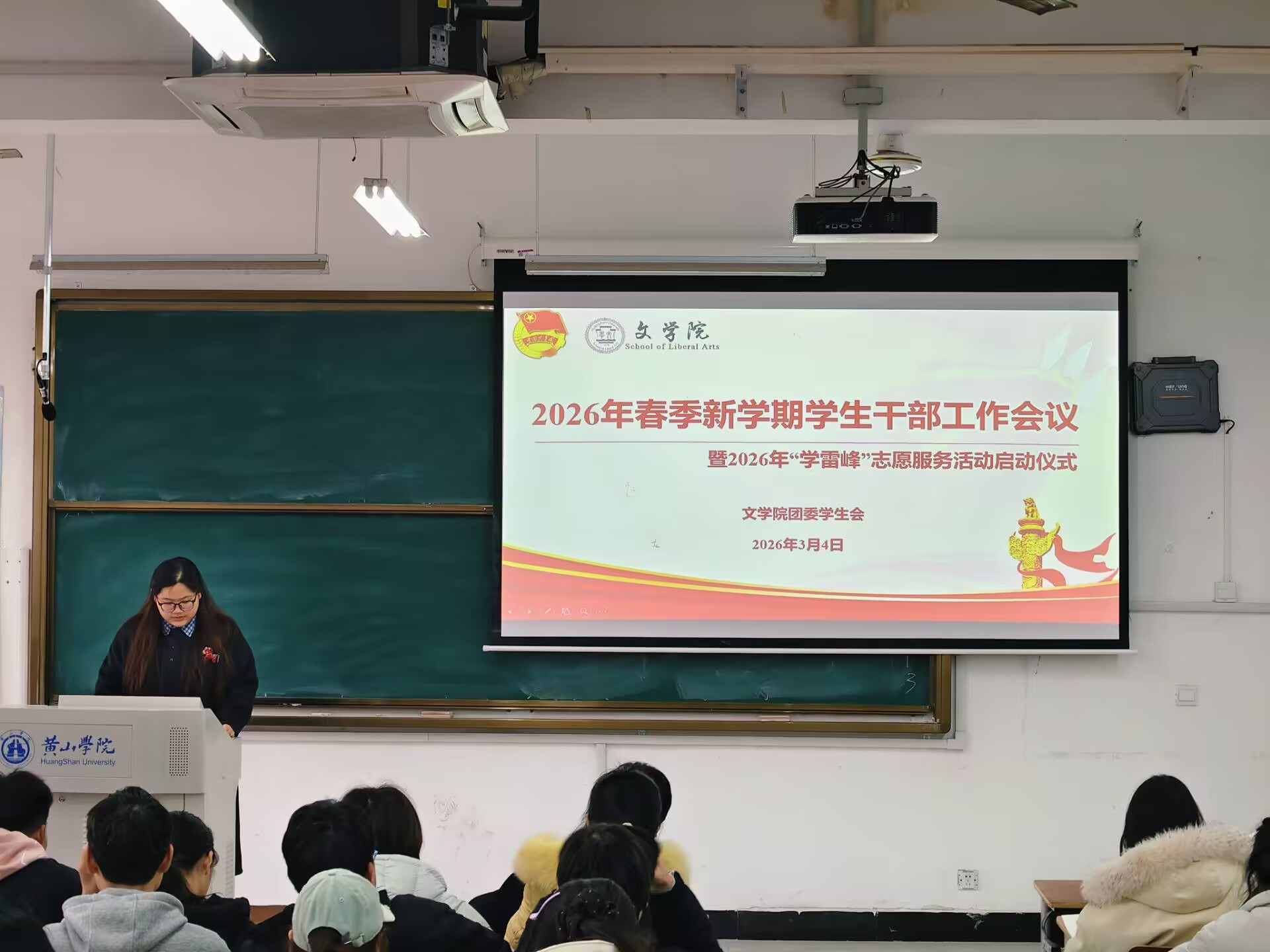3月4日下午,文学院2026年春季新学期学生干部大会暨“学雷锋”志愿服务实践活动启动仪式于文端楼2205教室隆重召开。党总支副书记周志荣、团委负责人王星勇及学生会全体成员参加了此次大会。