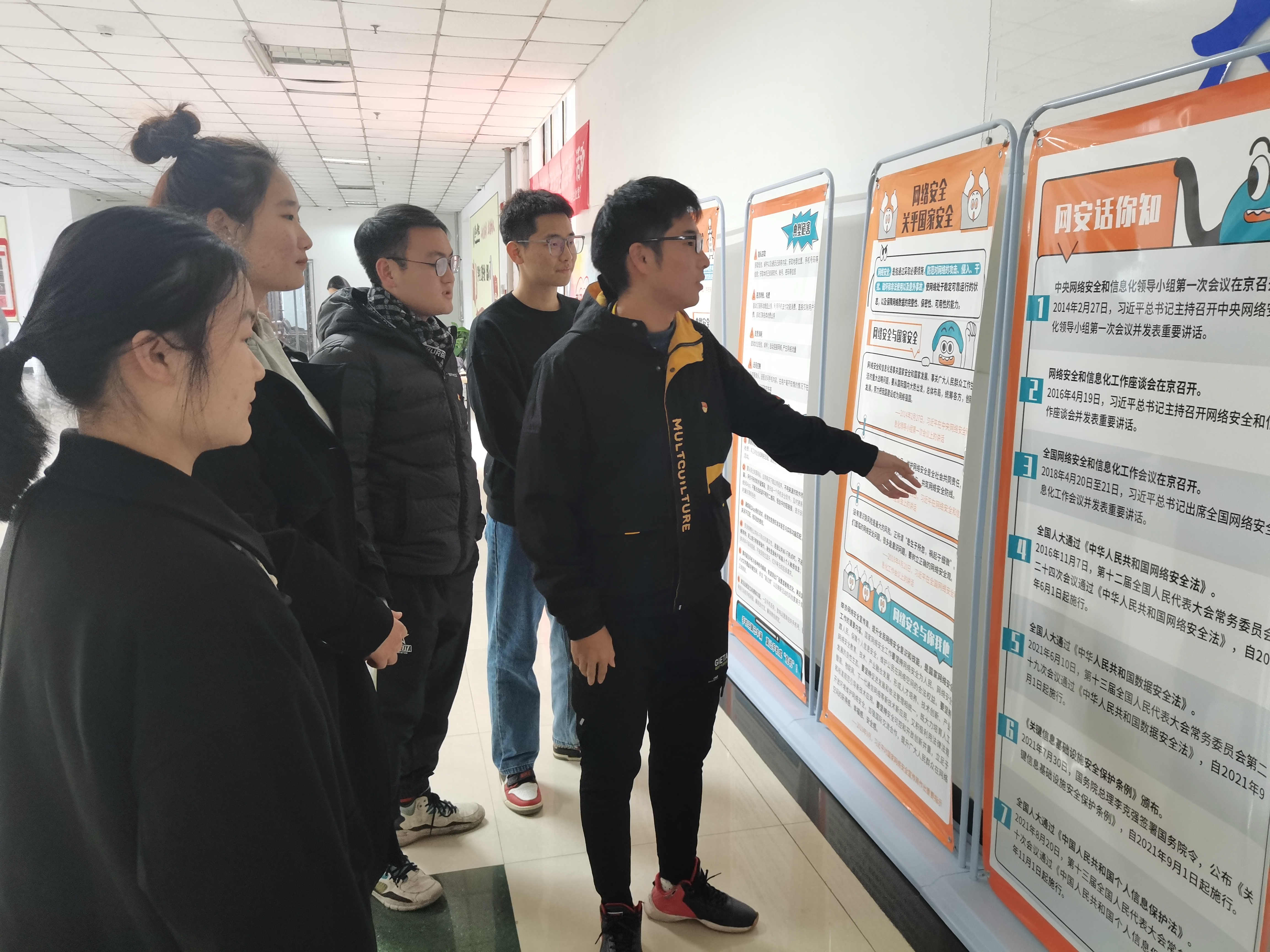 2021年12月7日下午,文学院学生党支部组织全体学生党员在逸夫图书馆一楼大学生事务中心参观我校网络安全知识宣传巡展。