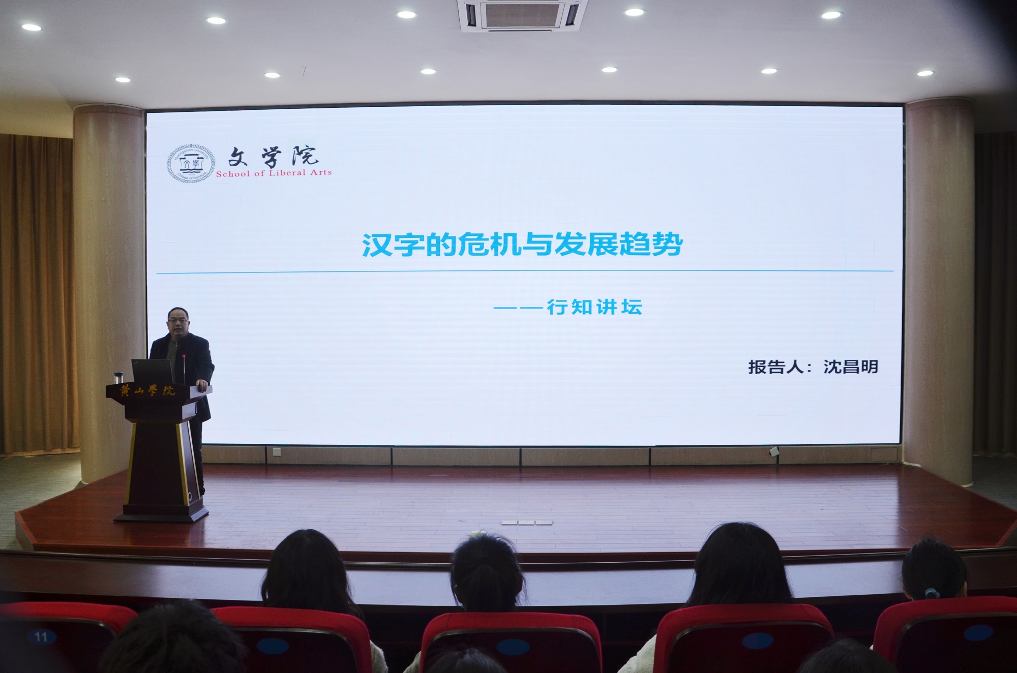 3月2日下午,黄山学院“行知讲坛”报告会在文端楼二楼报告厅举行。文学院副教授沈昌明应邀作题为“汉字发展危机与汉字发展总趋势”的报告,两百多名师生参加活动。