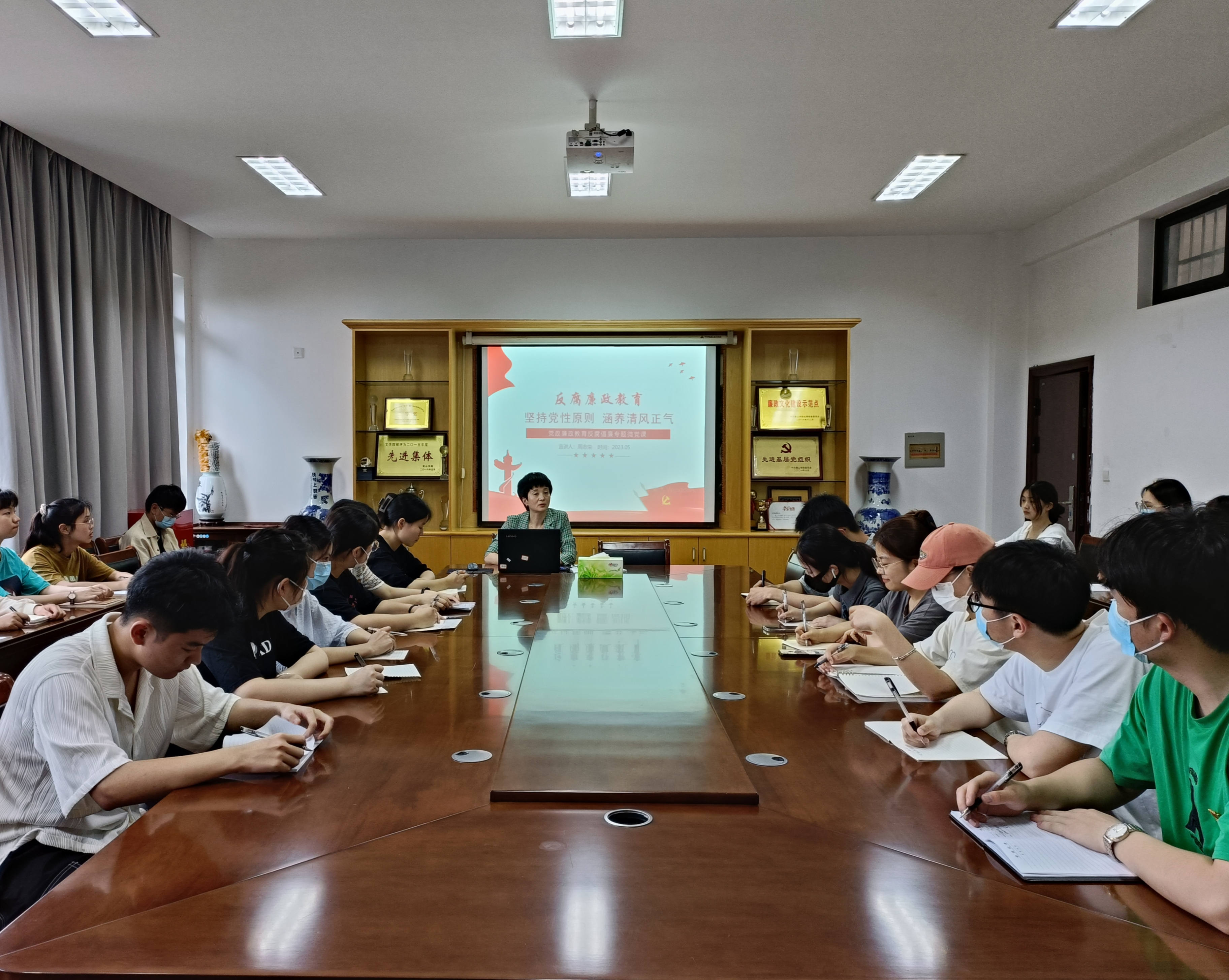 5月26日下午,文学院党总支副书记、纪检委员周志荣在该院会议室以 “坚持党性原则,涵养清风正气” 为主题为全体学生党员讲授反腐廉政学习教育专题党课。