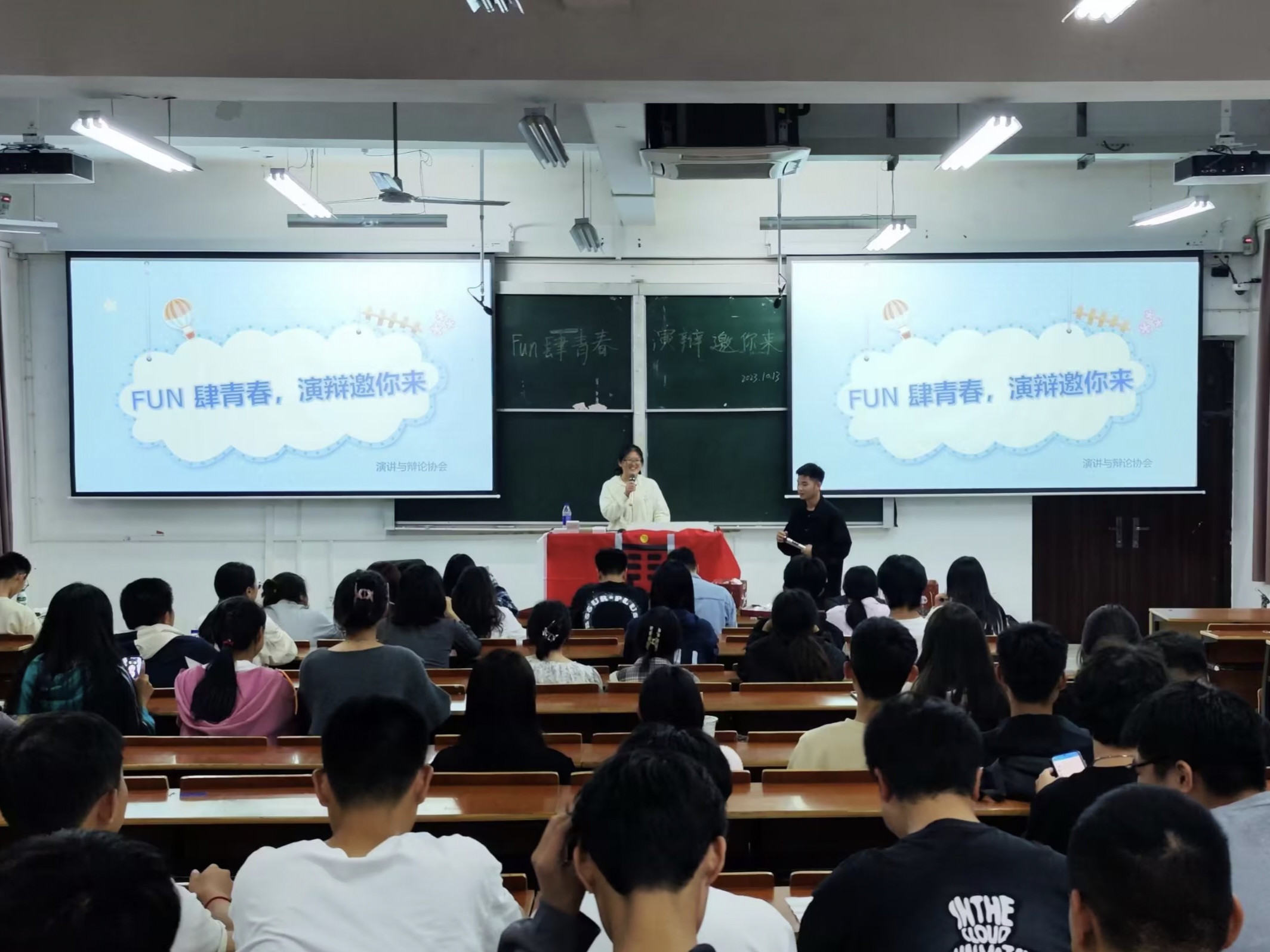 2023年10月13日19点,演讲与辩论社团“FUN肆青春,演辨邀你来”主题活动在文渊楼1105成功举办,活动由演讲与辩论协会成员组织,23级新生作为主要参与者参与活动。