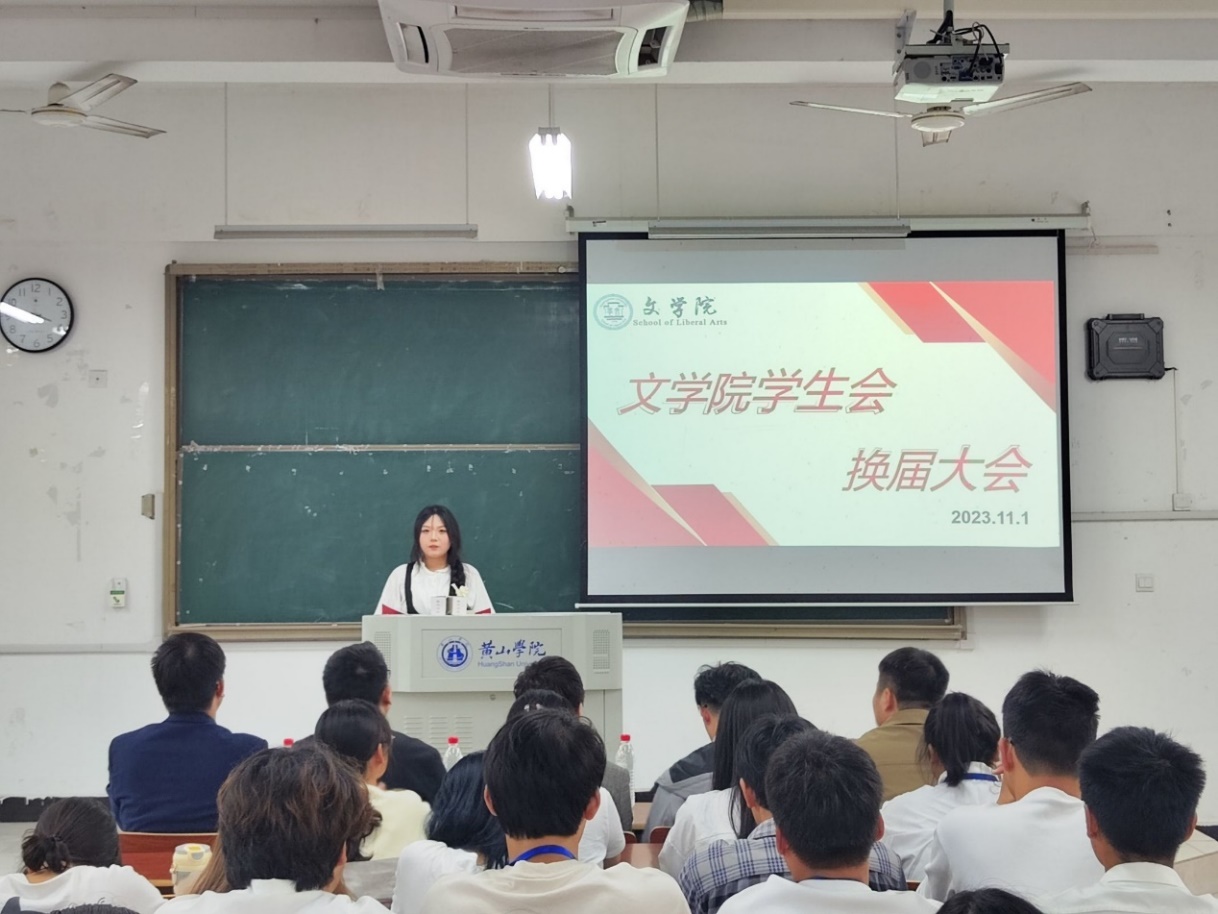 11月1日下午,文学院在文端楼2206教室举办2023年学生会干部换届大会。该院党总支副书记周志荣、汉语言文学专业党支部书记赵诗华、工会主席姚亚峰、团委负责人王星勇、专职辅导员朱亚军及全体学生会成员参加了此次活动。
