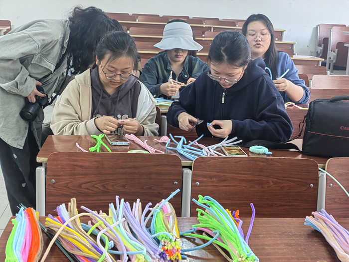 活动中,同学们利用社团提供的扭扭棒编制成各种各样的小饰品。大家都积极发挥想象力,活动达到了一定的预期效果。