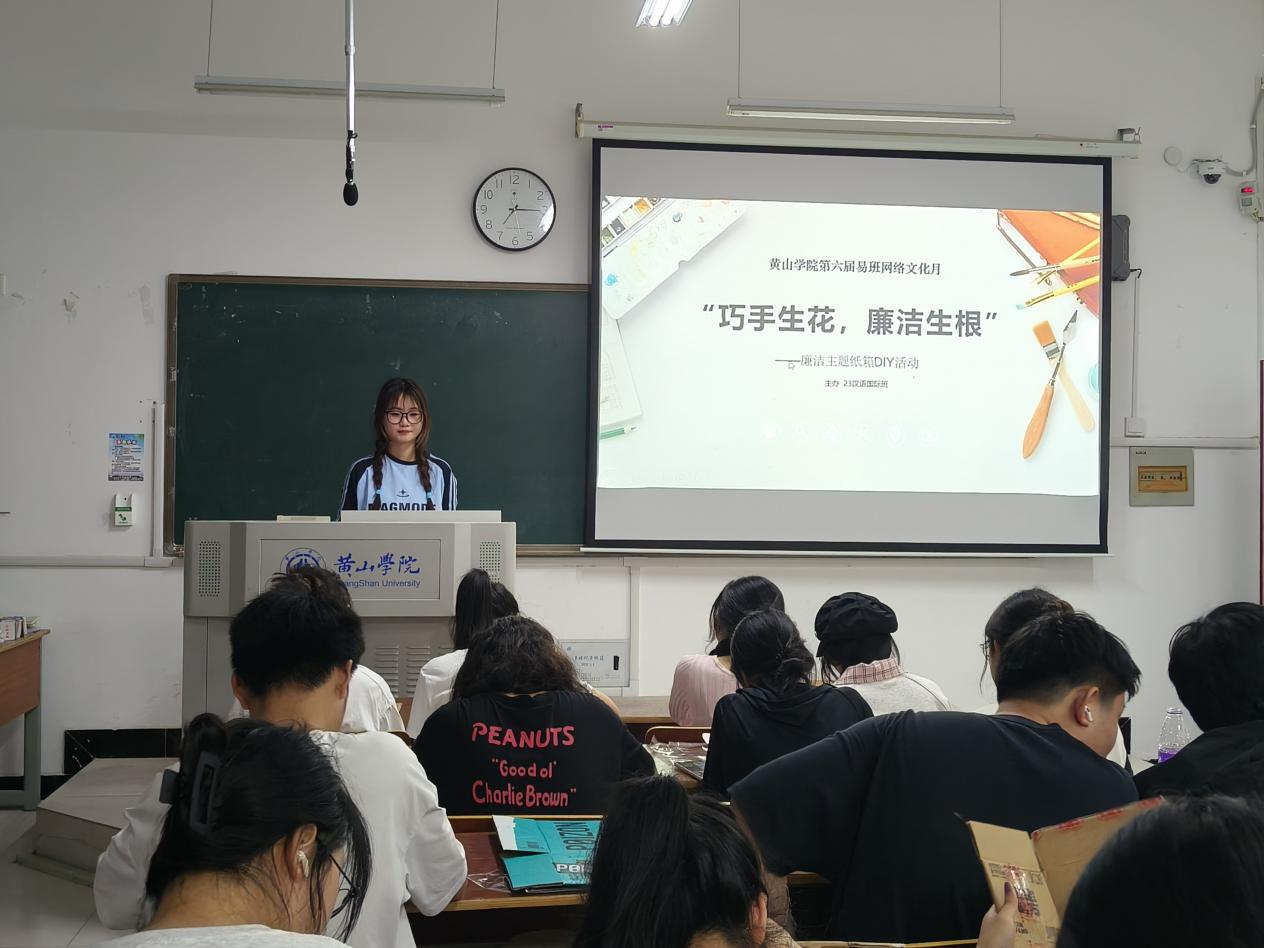 为弘扬廉洁精神,倡导廉洁文化,4月29日晚七点23汉教班全体同学于责任教室2103开展“巧手生花,廉洁生根”纸箱创意设计廉政主题活动。