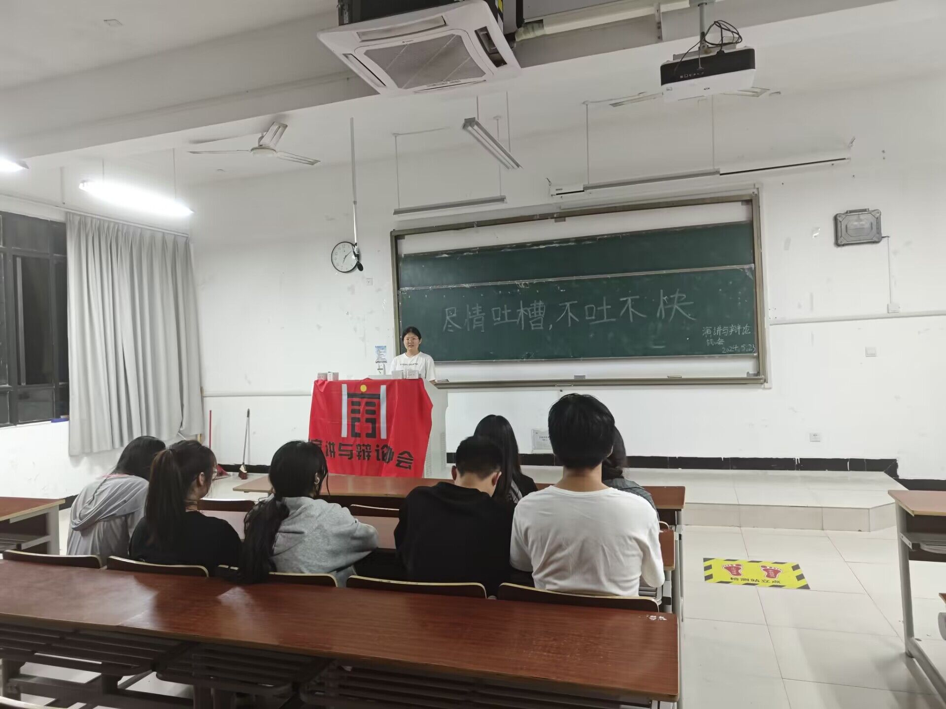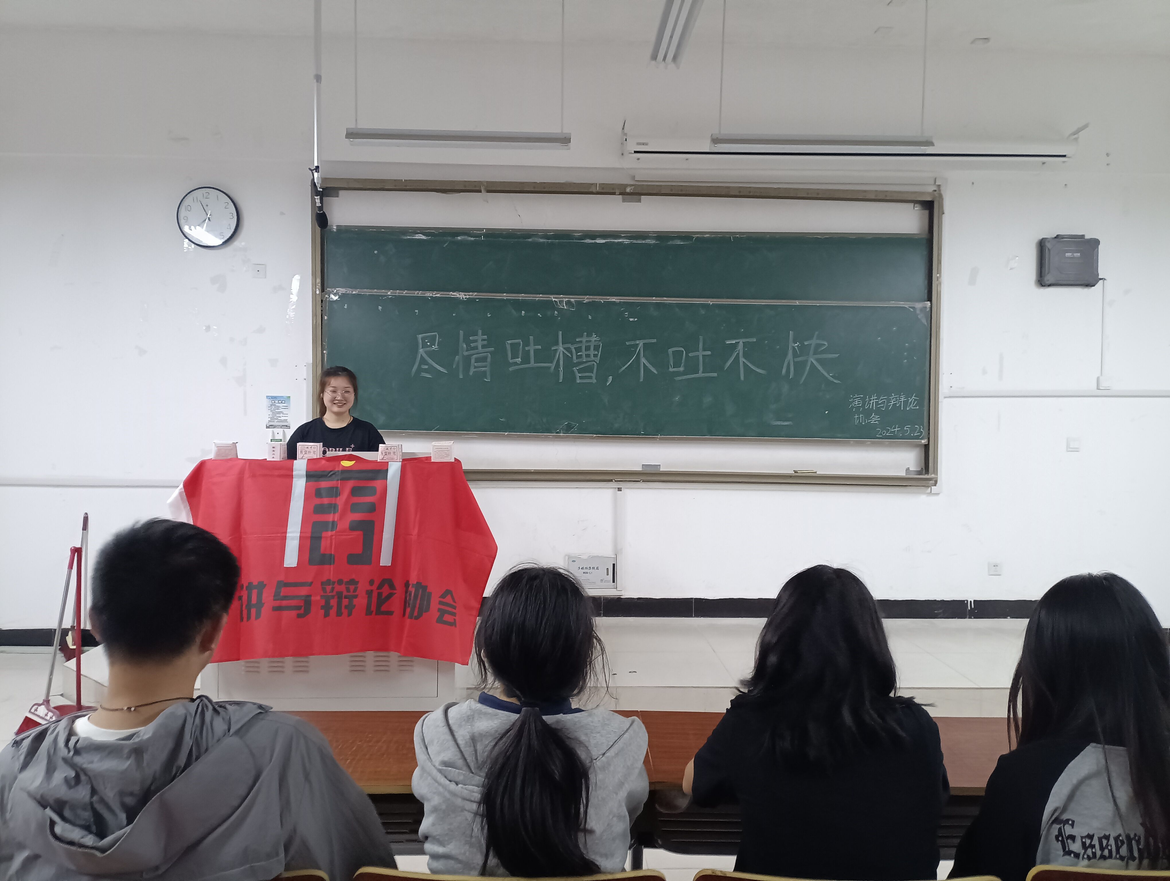 2024.05.23 19:00-21:00演讲与辩论协会成功举办了一场别开生面的“吐槽大会”,旨在提供一个平台让学生们畅所欲言,释放内心的压力与困惑,同时也促进师生之间的理解与沟通。