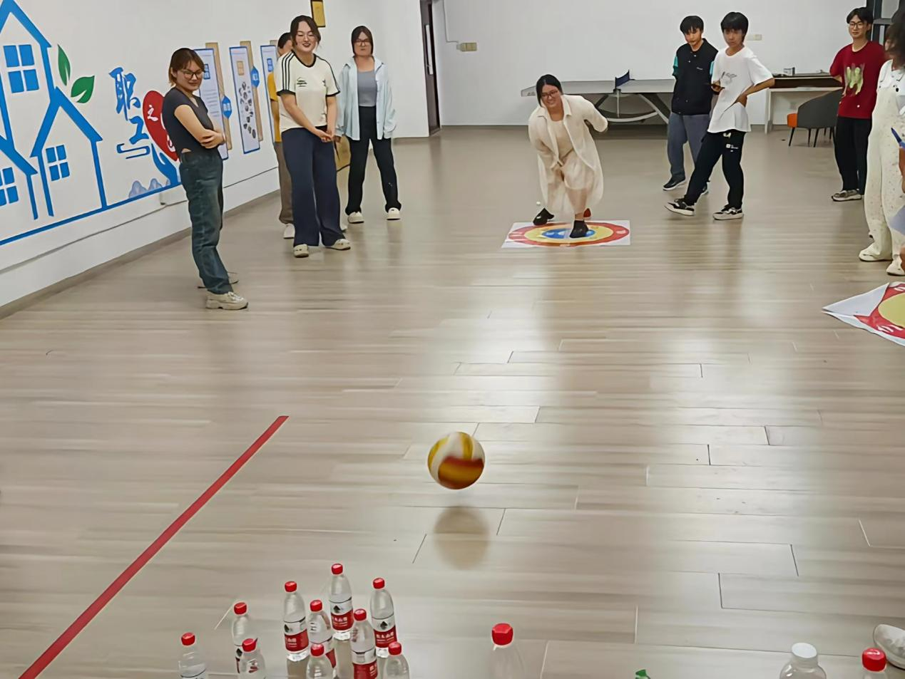 本次活动精心设计了“沙包投掷盘”、“数鸭子”、“你画我猜”、“点球大战”、“掷飞镖”、“你来我往三次默契大挑战”等八个融趣味和协作于一体的室内比赛项目,活动采取小组对战的形式进行,不仅是运动技能、技巧的较量,更是团队成员之间的默契与协作的比拼,活动现场精彩纷呈,其乐融融。