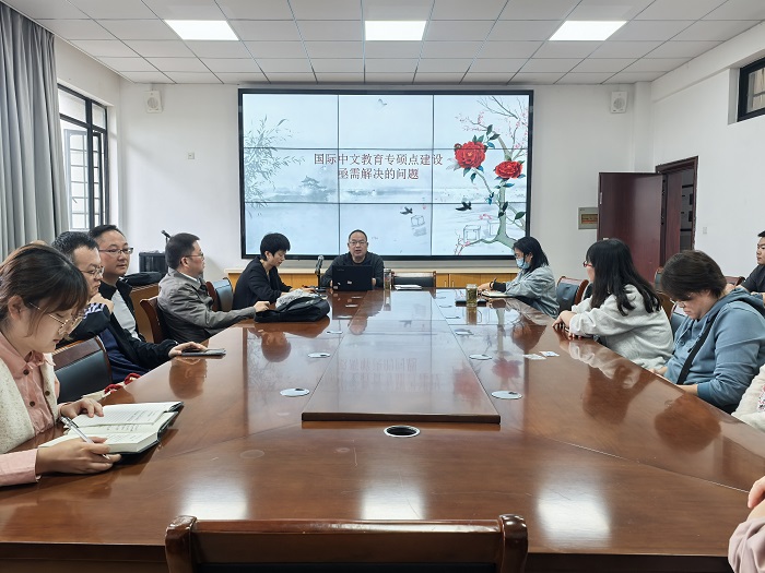 沈昌明结合国际中文教育专业硕士学位点申请基本条件和申请博士硕士专业学位授权点简况表的填写内容,从专业建设、师资队伍、骨干教师、行业导师、教学成果、科研项目、科研成果、学生就业、学科竞赛等方面,以具体数据分析了专硕点目前取得的成绩和不足,号召全体教师凝心聚力,聚焦不足,对标对表,发挥集体智慧,力争在2025年底以前完成既定目标任务。