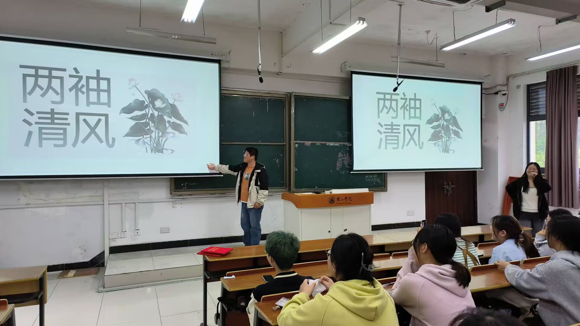 活动线上线上同时举行,学生将廉洁诗词作品誊写然后拍照上传到易班优课课群的在线作业中,活动现场学生以个人或团体名义上台诵读廉洁相关的诗词,或讲一段诗词背后的廉洁小故事,从《爱莲说》、《拒礼诗》到《咏廉政》,以守初心、沐清廉的情怀,弘扬廉洁文化。