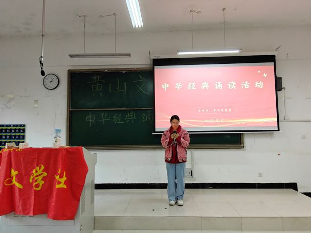 为引领广大青年深入学习和宣传贯彻党的二十届三中全会精神,更好地传承和弘扬中华优秀传统文化,并在广大学生中培育和践行社会主义核心价值观,展现我校学生健康向上、朝气蓬勃的精神风貌,2024年11月6日,由黄山文学社举办的“古韵流芳,经典传唱”中华经典诵读活动在文端楼2207圆满完成。