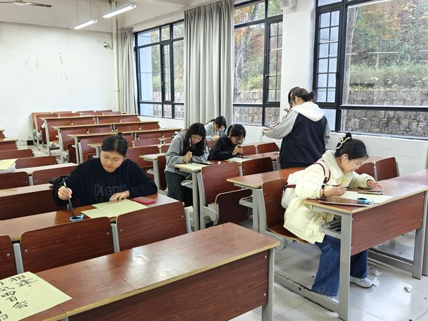 为引领广大青年更好地传承和弘扬中华优秀传统文化,激发同学们的创作热情和对书法的兴趣,同时展现我校学生健康向上、朝气蓬勃的精神风貌,2024年11月23日,由黄山文学社举办的“诗歌小摊”书法创作活动圆满完结,参与人数约60人。