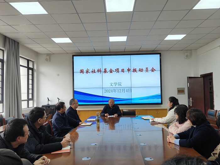 12月4日下午,文学院召开2025年国家社科基金项目申报动员会。文学院潘定武教授作专题辅导,汉语国际教育专业教师、中青年博士参加会议。院长沈昌明主持会议并作动员讲话,党总支书记汪方学作总结讲话。