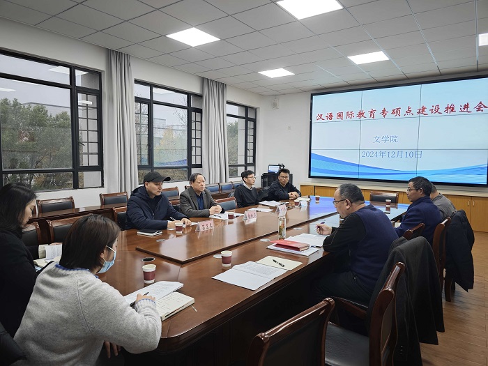 12月10日下午,文学院在文端楼二楼会议室召开国际中文教育专业硕士点建设推进会。校党委书记李铁范莅临指导作总结讲话。文学院、外国语学院、教育科学学院、文化与传播学院负责人,科研处学科办工作人员和各学院教学秘书参加会议。